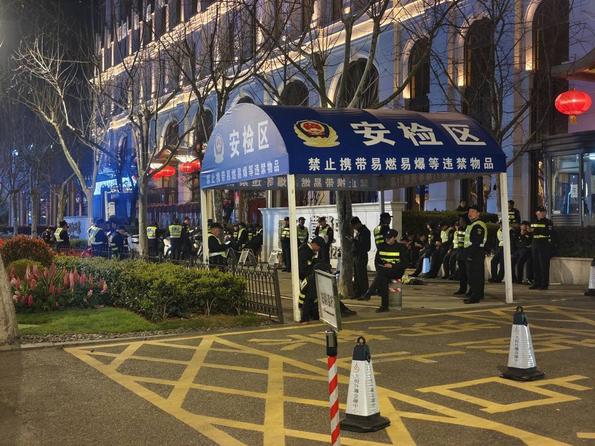 3月21日晚,武汉三阳路,安保人员在集结待命。(湖北日报全媒记者 柯皓 摄)
